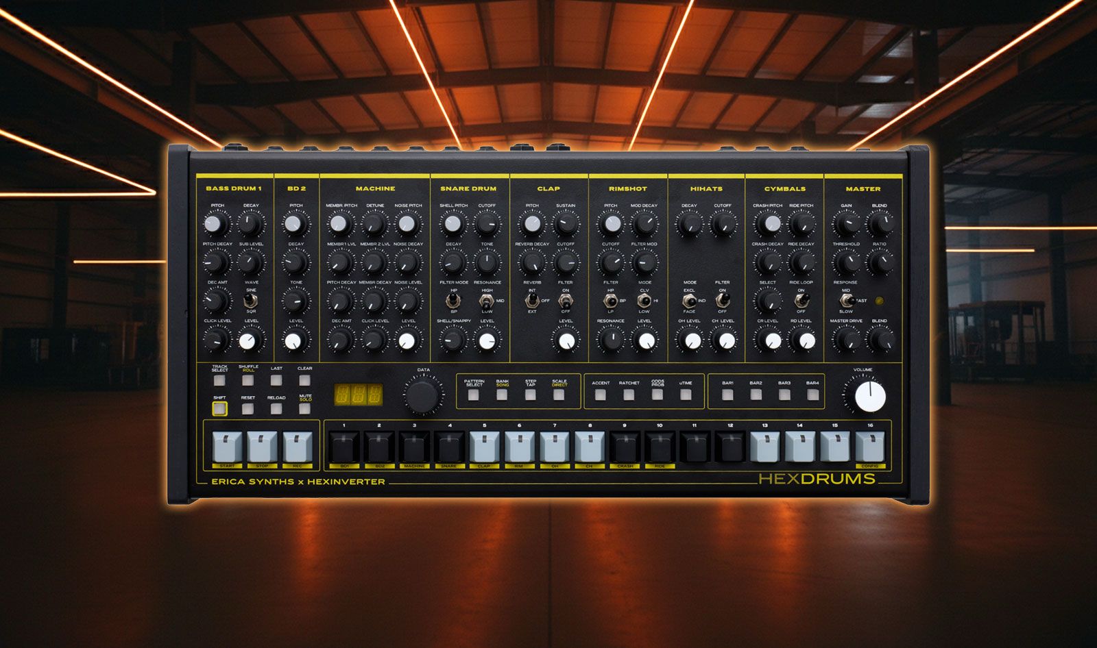 Built around the sound philosophy of the original Hexinverter Mutant drum modules, Hexdrums translates their raw and aggressive character into a self-contained instrument. The goal is clear: deliver the flexibility and depth of modular percussion synthesis without the complexity of patch cables, while maintaining a workflow that remains accessible in both studio and live performance contexts.